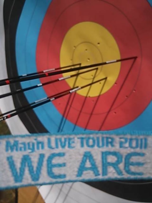May'nちゃんのアップテンポな曲を聴いてテンションあげてます☆的までの距離は70m1回6本で60点満点直径12㎝の10点を狙います(^^)/10点3本、9点2本、8点1本56/60点…まだまだ低いですがMay'nちゃんの歌聴いて国体出場目指しまーす♪ヽ(´▽`)/