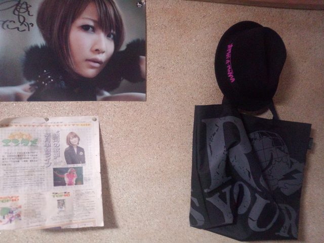 メインスペースですw。クリアポスター、マイマニハットに RYBのバックそして見にくいですが小中学生新聞という新聞で取り上げられた部長の記事w 初の横浜アリーナ単独ライブとあるのでごあらのことですね よくぞ、部長を取り上げたなと思いました(・ω・)