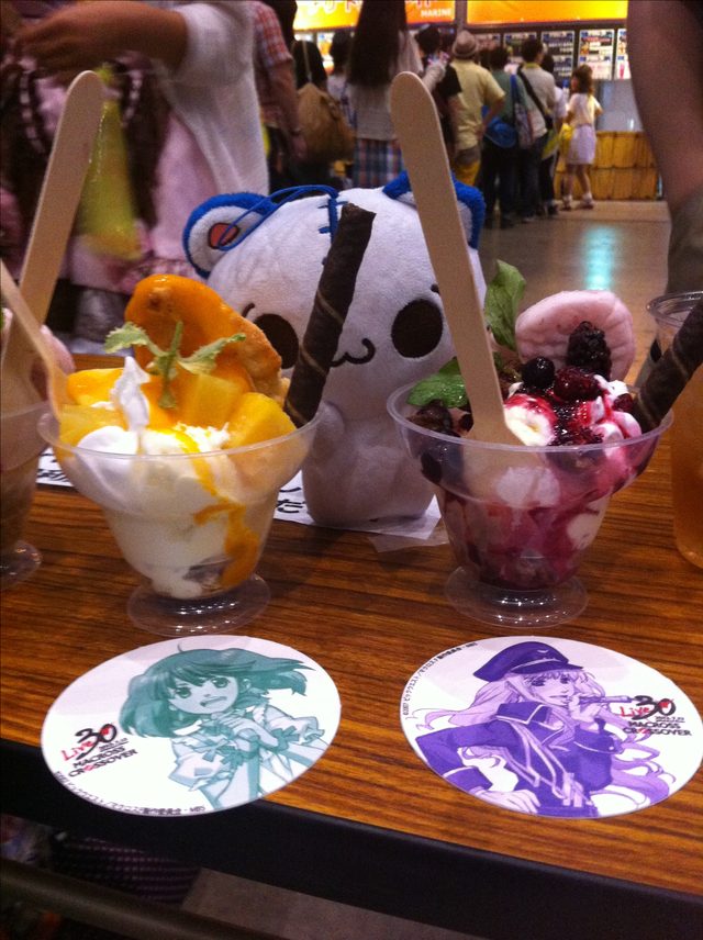 ぱいんけーきぱふぇと携鯛ぱふぇお〜(●ω●*)こーすたーもシェリルしゃんとランカちゃんが揃ったんだお(●ω●*)♪味はどちらもとってもうまままだったお☆