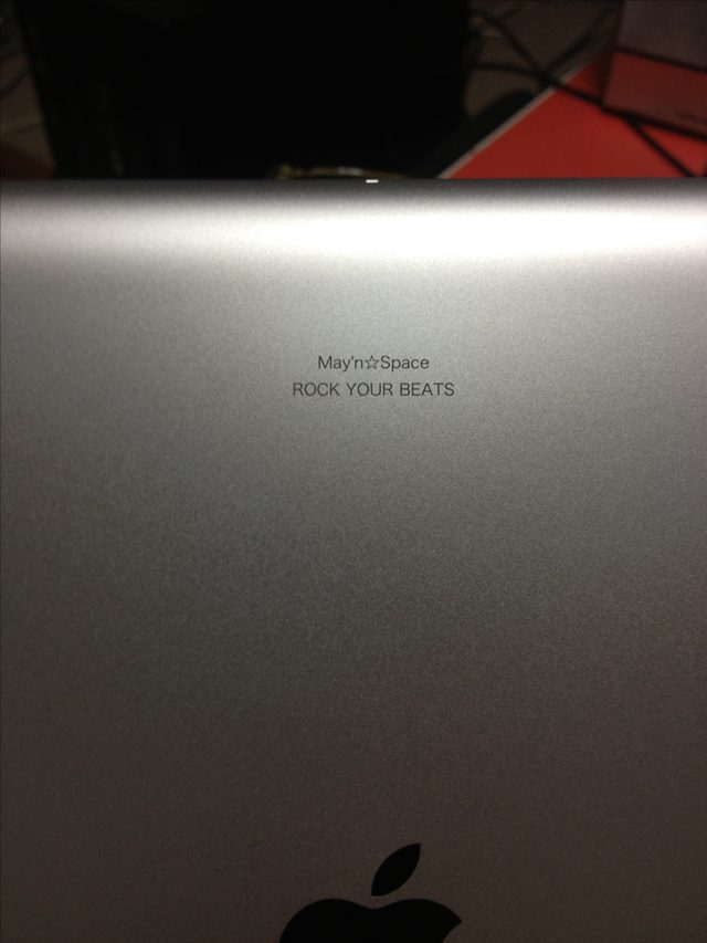 ついにiPADを購入しました!裏面に何か刻印を入れられるみたいなので自分の好きな曲名をいれてみました!カバー付けたら見えないけど(笑)これからどんどんMay'n仕様にしていきたいと思います。取り敢えず、jubeatのMay'nPackはノータイムで購入しました(笑)