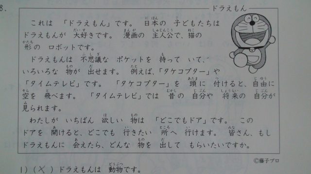 私はドラえもんをおもいだしました。私の国の日本スーパーはテレビでドラえもんをみました!