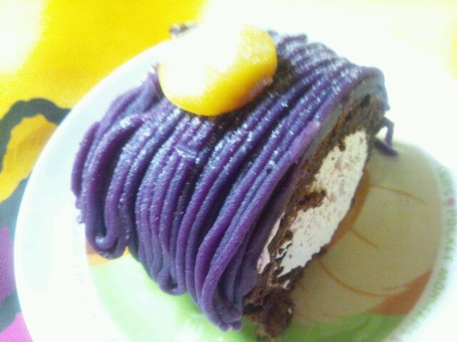 うちのダリン6月に沖縄社内旅行♪ヽ(´▽`)/その中でも素晴らしく美味しい紫芋のロールケーキ!!May'nチャンゎ買ったかな(笑)