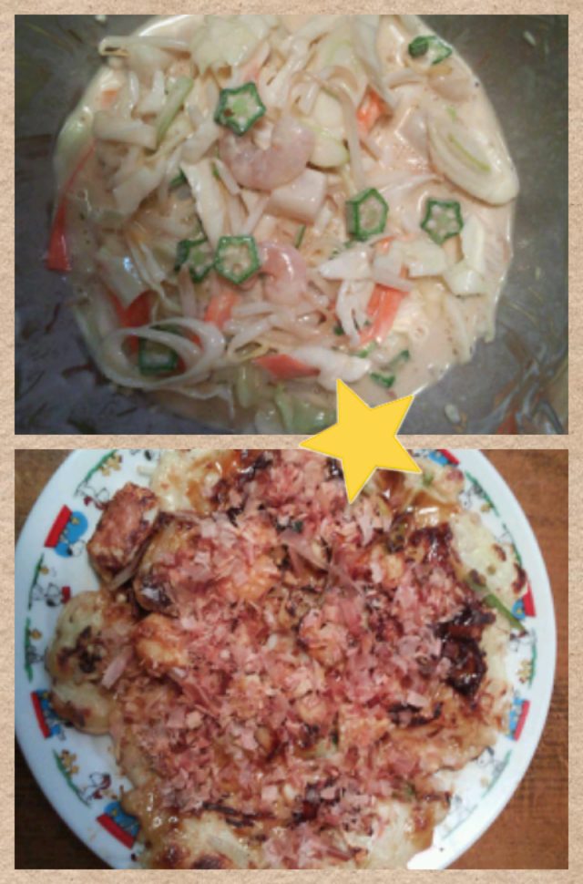 オクラ入りお好み焼き作った