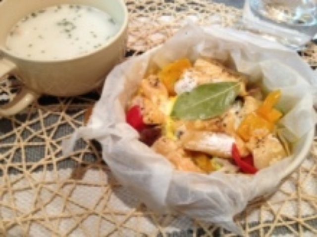 サーモン尽くしー☆みんなからの案を参考に二品つくった!まず、ホイル焼きならぬクッキングシートチン♪wこれたまに作るんだけど、簡単で( ゚д ゚)ウマー詰め込みすぎて全然みえないけど耐熱皿にクッキングシートをしいて、オクラ、ミニトマト(黄・赤)、椎茸、サーモンを入れて、卵を真ん中に割る。ハーブ塩とブラックペッパーと白ワイン少々、オリーブオイルをかけたらローレルをのせて包んだら6~7分チン☆でっきあがりー☆スープは、うちにあったインスタントのクラムチャウダーだよん簡単なのに、ローレル入れるだけでかなり本格的な味になります☆ほんとはバター醤油のホイル焼きしたかったのに、バターなかったの!だからまたバター買ってきたらこれみたいなのつくろっと。実はご飯が炊き上がるまでにお腹が空きすぎて、先にホイル焼きを食べてしまったw締めのご飯wあ、でもお店っぽいか!\(^o^)/締めのご飯\(^o^)/炊き込みご飯\(^o^)/米の上に小さく切った椎茸をのせて、しょうゆ、だし汁、お ...
