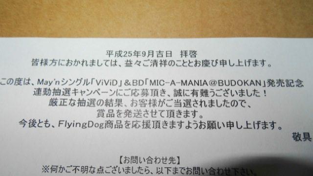 ViViD & マイマニ 連動キャンペーン、皆さんのような素敵なイラストなど描けませんが、両作品の感想を書いて応募していました。部長のサイン入りポスターが届きました!!当選、嬉しいです。(後から届く人の為に、実物の写真は控えた方がいいのかな)サイン入りポスターは、メルマガ会員限定イベントの二択問題に最後まで残った時に頂いたポスター以来です。ありがとうございます!