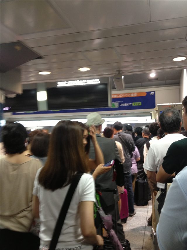 大混雑の東京駅・・・・台風のせいで新幹線が運転見合わせで帰れない・・・・。