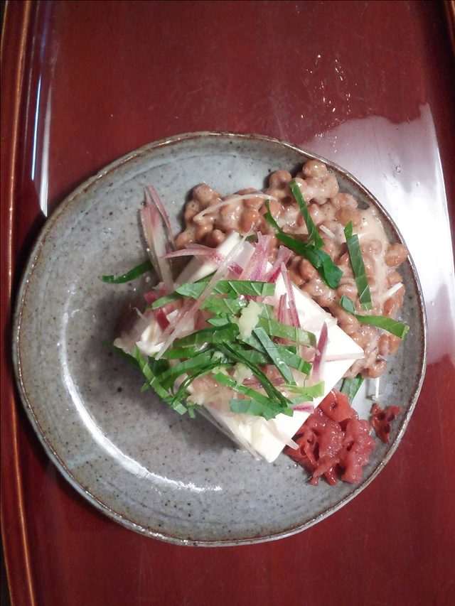 豆腐、みょうが、大葉、納豆に梅肉をプラス…これ、うますぎ!