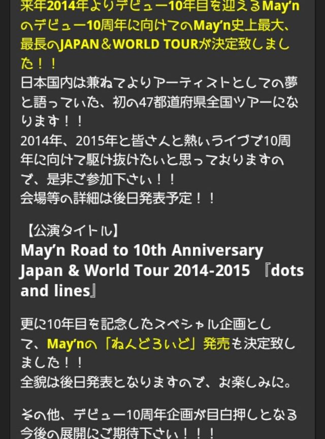 May'n公式SNS "May'n Space" にようこそ。ここはアーティスト May'nとファンの皆様、そしてファン同士の交流の場です。写真や動画、さまざまな記事などをシェアできる楽しいコミュニティです。登録無料なので、どんどん参加してね!