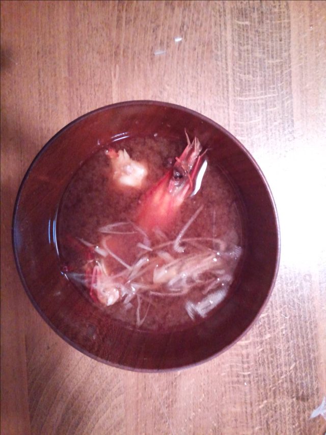 カレーに海老の頭入り味噌汁どうぞ\(^^