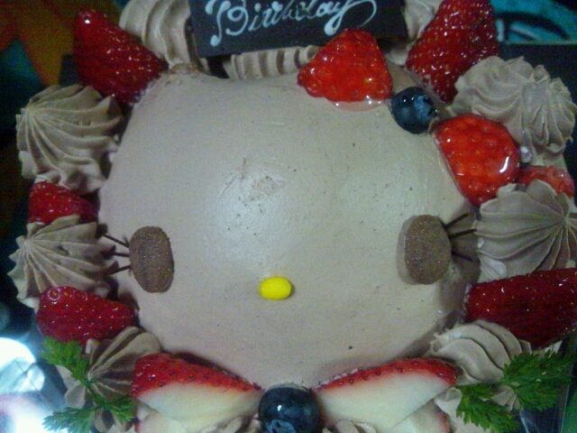 May'nチャン にじゅぅよんちゃぃ─=≡Σ((( っ'∀')っ素敵な大人女子May'nチャンにゎ このcakeが いいかしら─=≡Σ((( っ'∀')っ萌ぇ〜萌ぇ〜─=≡Σ((( っ'∀')っchocolate shop 本店で チョコ タイプの birthdayキティちゃん cake。。⊂(^(工)^)⊃くまモンあればいいなぁ。。