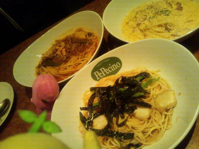 昨日です(笑)博多区美野島に、あるペペチーノです♪このお店に出会う前…パスタって…美味しいと思ったことが無かった(笑)博多に来てはじめてパスタが美味しいと感じたお店でした。。ピザが、パイ生地の様に…成っていて名物が、ハットピザ─=≡Σ((( っ'∀')っこれもぉ初(笑)かれこれ20年通ってますね♪ヽ(´▽`)/何ヶ月かに一度ゎ…食べたく成る(笑)May'nたいこ和風とMay'nたいこクリームスパイシーmeet─=≡Σ((( っ'∀')っハットピザゎ…あとでupします─=≡Σ((( っ'∀')っ