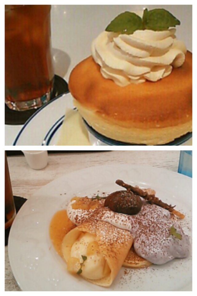 かぼちゃのスフレ&栗と紫芋のパンケーキ(*´▽`*)スフレはオリックス劇場の近くにあったお店。ライ部前の腹ごしらえに。パンケーキはライ部で部長のお話聞いてたら食べたくなっちゃったので、心斎橋で発見したお店で♪