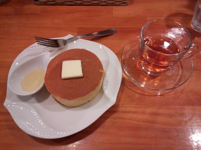 厚焼きのパンケーキ、ふんわりしっとりいい香りで美味しかったです。