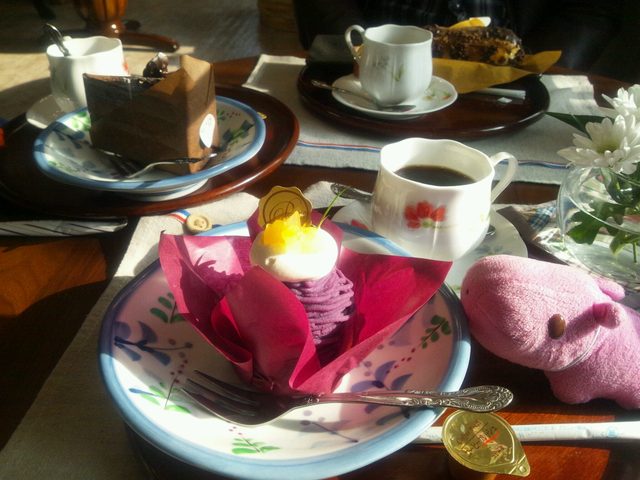 May'nチャン到着したかしら。。由布院スイーツ☆⌒(*^∇゜)vこの紫モンブランのなかにゎ…夢がいっぱぃ入ってました。。お餅 jelly 黒豆 クリム …甘々やなくて上品な甘さgoo─=≡Σ((( っ'∀')っ由布院行ったら探してね(笑)お店の名前。。銀の彩。。ぎんのいろどり〜創作パティスリー〜