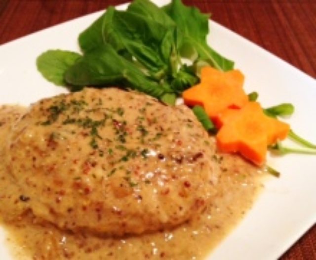 今日は、お仕事が早く終わったのでまたまた夜ご飯を作れました・。(・▽・*)・。昨日、ブンチャーで挽肉を買ったので今日は残りでハンバーグ\(^o^)/前にも載せたことある気がするけど、大好きなハンバーグ屋さん"ハンバーグウィル"のレシピで♪豚肉100%なので、ハンバーグそんなに好きじゃないわたしもここのハンバーグは大好きなのです\(^o^)/豚肉だけで作ると、フワフワでかなりジューシーになります★中にはチーズも入れました( ̄▽ ̄)とろけソースは、粒マスタードと生クリームと玉ねぎで作るんだけどこのソー ...