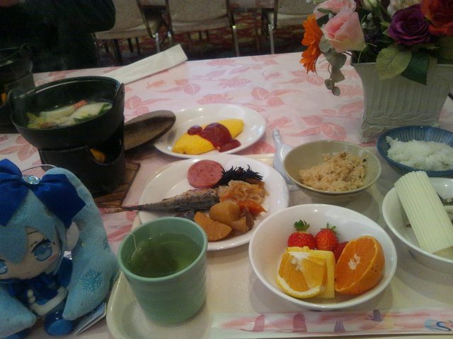 ホテルの朝もバイキング☆。。入り口で お正月の 御神酒を 頂き(笑)突撃ら部バイキング☆。。昨夜の飲み過ぎ食べ過ぎのせいで…くまモン体型の私…思った程 食べられヘンdesertのフルーツを 沢山食べた…くらいかな…(;´д`)