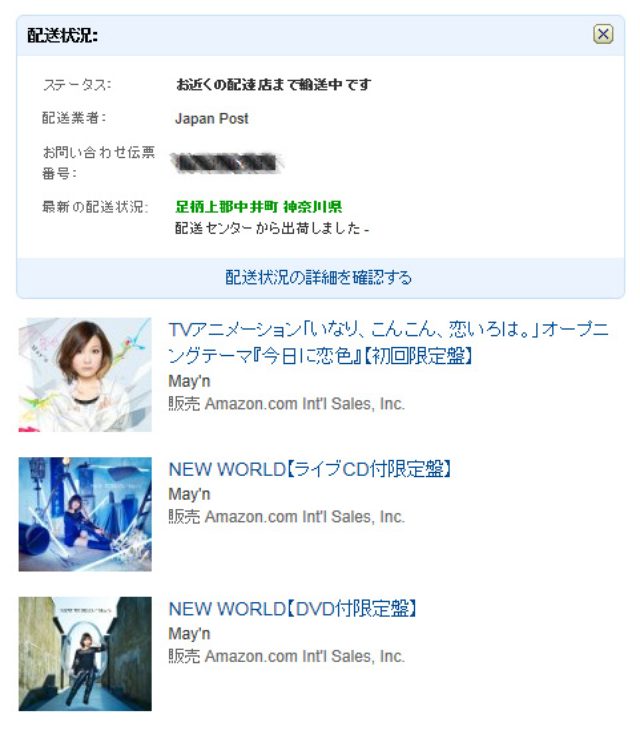 火曜日朝に発送メールが着てたから発売日に届くかと思っていたがなかなか来ないよ今日何回アマゾンにアクセスしてこの画面を見たか(´・ω・`)お届け予定は30日になってるから明日には届くはずもう手に入れてる方々が羨ましいそれにしてもアマゾンさんは千葉からだったり大阪からだったり神奈川からだったり、全国に倉庫があるんだね~大阪からだったら1日で着くんだが…