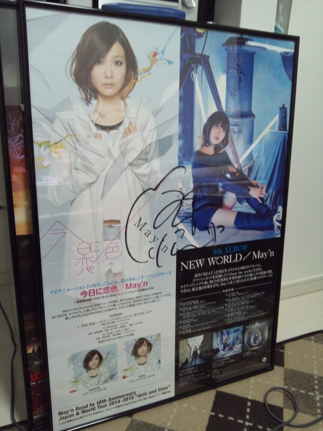 今日開けました!中島愛さんのポスターをお片付けをしから!そのかフレームにサイン入りのポスターを入れました。 V!