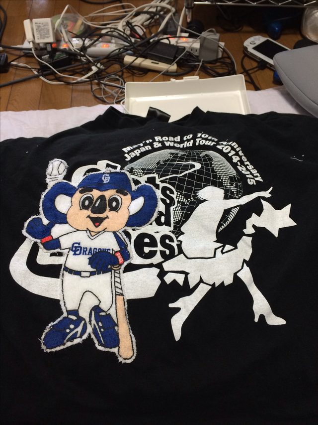 タンスの奥から某球団のタオルが出てきたので、発作的にあの方を切り抜き、縫い付けてしまいました。