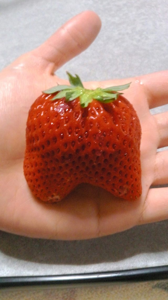いちごロマンっていう品種です。私の手めっちゃ大きいので分かりにくいですけど大きくて、すっごい甘かった。部長がココで買って食べてたのもこんな感じかなあ~♪