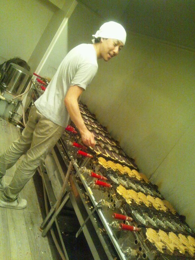 そして─=≡Σ((( っ'∀')っMay'nチャンの師匠ですよ!May'nチャンのfanの方々が、沢山来て頂きありが鯛事です!May'nチャンが?そんな事を?!照れくさそうにしてましたょw写真撮らせて頂きましたヽ(*´▽)ノ♪うちは、博多区なので また来ますねって─=≡Σ((( っ'∀')っMay'nチャンの師匠もお弟子さんも素晴らしくて!気分が良くなりました(* ̄艸 ̄)それと、お店の隣のbillに 以前 友が住んでましたょ!とか世間話。。師匠は、大分出身で 東京で 修行されたとの事で、May'nチャンには、その時に!師匠と言う程の者では、無いですよ(照)ほんと!イケMay'nで、性格も男前でしたね─=≡Σ((( っ'∀')っできたて鯛焼きは、薄皮でうすくパリパリ!餡が、しっかり立ってる感じで甘いのですが後味さっぱり!甘いものちくっと苦手ですがw美味しく頂きました♪ヽ(´▽`)/