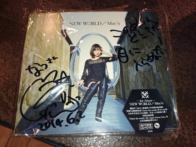 休みがうまくとれず1泊4日の弾丸日程となりましたが、無事帰って参りました〜。台湾は1月のAnimax Musix以来でしたが、日本以上に熱いライ部でした!!整理番号の兼ね合いからシンガポールとは違い日本遠征組が一箇所に集中してそこだけ跳びまくってるような感じでしたが、現地の方々は声出して楽しんでいるのがよく伝わってきました〜2日目は初日の疲れを引きずってか終盤バテバテだったのでジムにでも通ってトレーニングしないと…また、今回の台湾では四谷の若葉の暖簾分け?みたいな鯛焼き屋さんに行きそびれてしまったので次回は是非!!と思っております。写真はサインを戴いた現地版の「NEW WORLD」FC会員向けのチケ販売を企画してくださった関係者様、ありがとうございました。