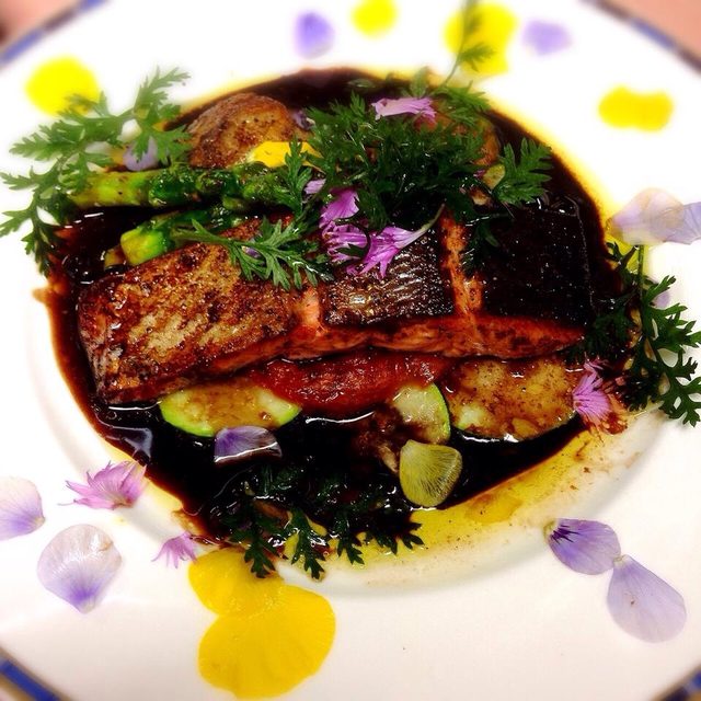はい、お久しぶりの料理写メUPで御座います( ^ω^ )/今回はお客様に、とにかく気持ちのこもった料理をとの事でしたので、妖精を歌うぶちょくらい気持ち込めて作らせて頂きました( ^ω^ )/時鮭と帆立のポワレ トマトのコンフィとケッパーとバルサミコのソースと、シトロンドレッシングを添えて芳ばしい甘い香りを付けたかったので、焦がしバターで魚介はポワレしてます( ^ω^ )/