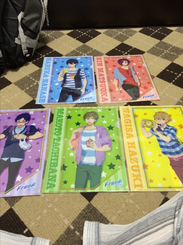 今ローソンでfree!のフェアやってます!今日の帰りにからあげ君とおにぎりを買いに行こうとローソンに行ったら!free!がやっていることに築き買いました!二軒目のローソンで残りの奴を買って揃えました! 会社帰りなのに!疲れました!寝ます!