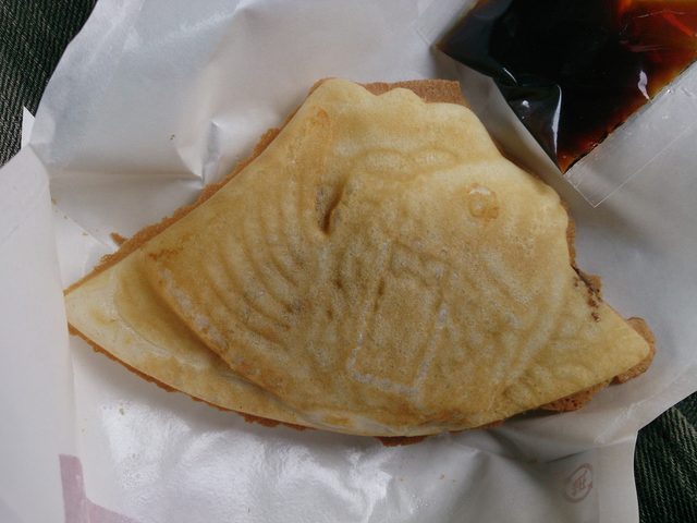 富士急ハイランドのふじやまたいやき。きな粉餡 今だけ黒蜜付き! 美味いぞ!