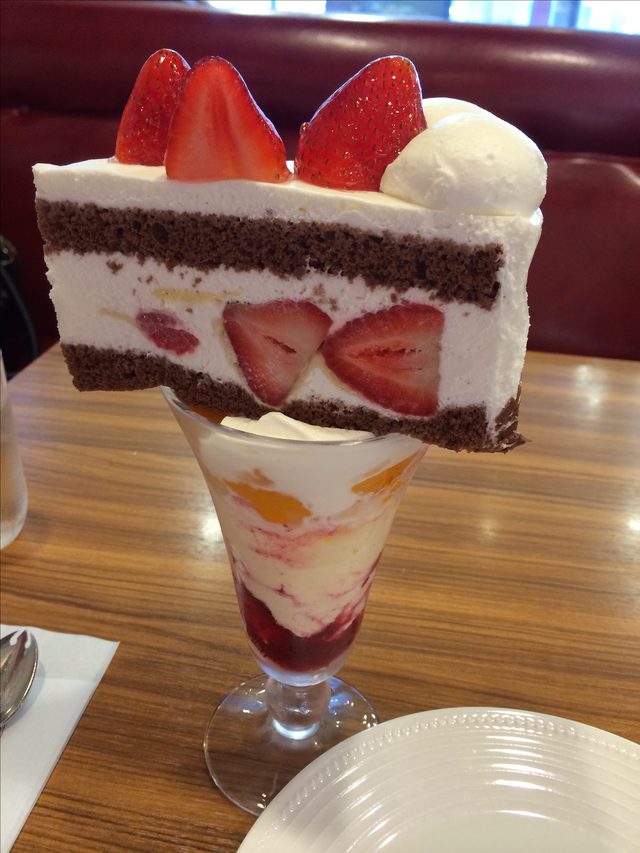 これ、めちゃくちゃ旨い(≧∇≦)ケーキとパフェを一緒に食べられるとか夢のようですわ( ´ ▽ ` )