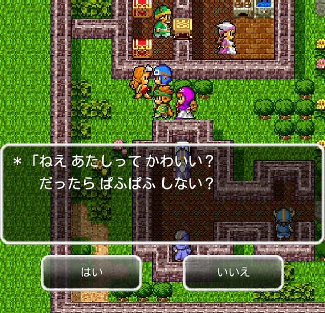 ぶちょと関係ないネタですが…スマホでドラクエⅡやってます。童心に返ってます(笑)でも、まちのおねえさんに突然こんな質問をうけてビックリ!純粋なボクは困っています(笑)はたしてなんと答えるのが正解なんでしょうか…(^_^;A: は いB: いいえ
