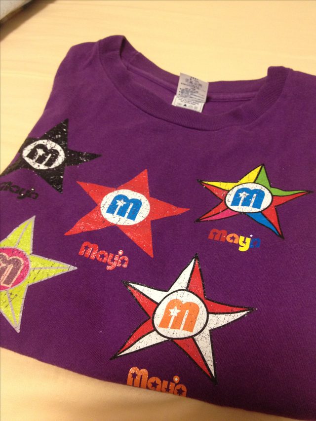 りあくと初日名古屋、お疲れ様です。私は明後日の東京公演に参加します!初めて「ライブTシャツ」なるものを買ったのがMay'n☆Actでした。あれから5年。部屋着にしていたら、プリント部分がすっかりボロボロになってしまいました(苦笑)さすがに、明後日着ていくのも何なのでお留守番させます…。今からライ部当日が楽しみ(≧∇≦)