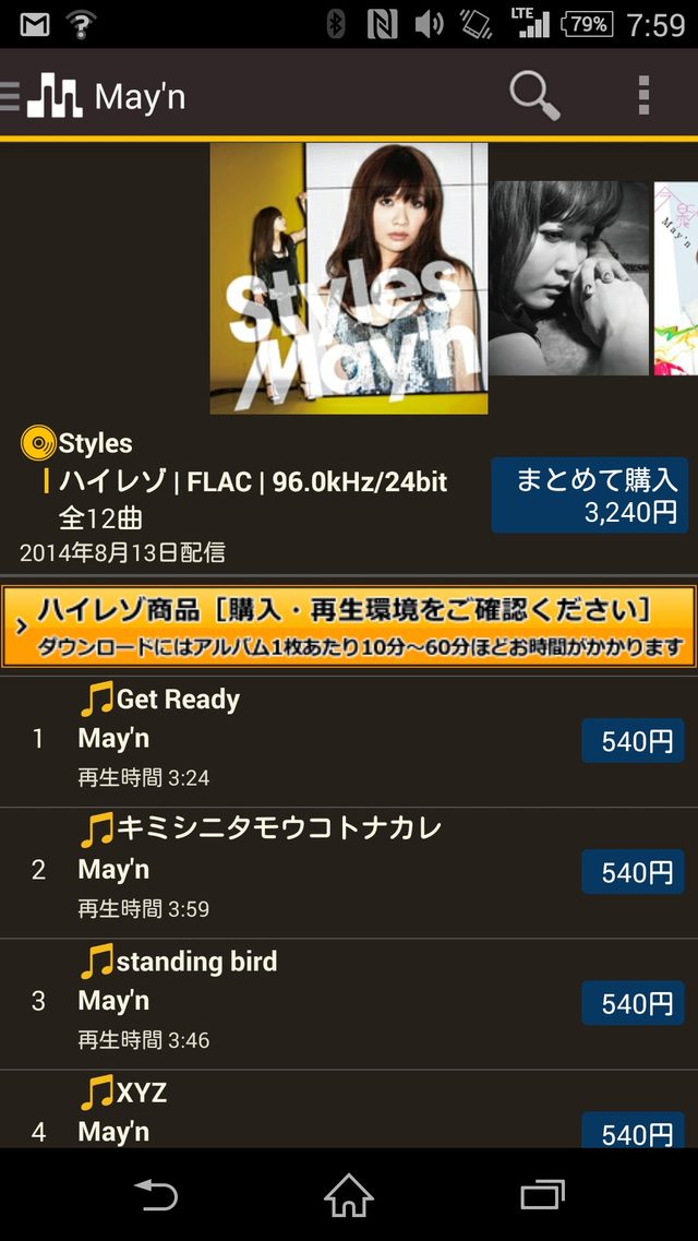 ハイレゾの音源を購入!! 店頭でハイレゾヘッドフォンを試したら、音のきめ細かさ、広がりがCDと全然違って驚いた!!デジタルコンテンツだとCDみたいに特典が無いのが寂しいけど^^;それにしてもハイレゾ音とぶぎょうの組み合わせは神だわ他のアルバムも早くハイレゾ化して販売して欲しいっす!