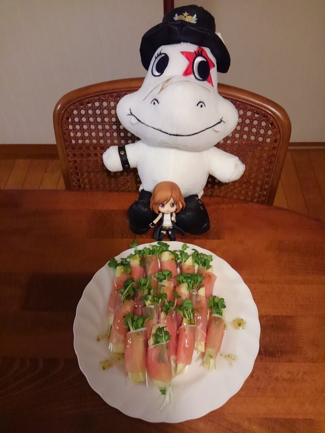 りんごとカイワレ生ハム巻きバジルドレッシングがけ!