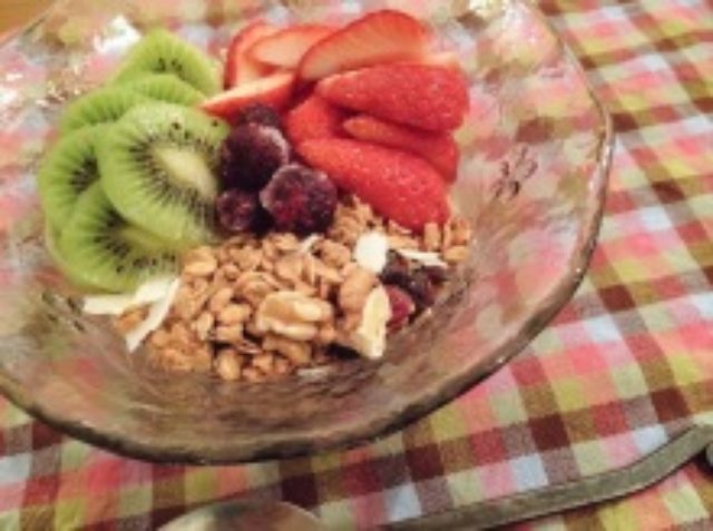 たまにはへるしぃなものを。w朝ごはん感ハンパないですが、夜ごはんですwグラノーラ!妹が京都土産で、COCOLO KYOTOというグラノーラくれましたっ今オシャレなグラノーラとかミューズリー流行ってるよね.。 ゚+.(・∀・) ゚+. ゚これをメインでお腹いっぱいになるまで食べちゃうとカロリーも高いし、なによりお値段が高!い!なので、ふつうにスーパーで買えるオートミールをメインにして味付け程度にさっきのを混ぜて食べるよーんグラノーラ=牛乳というイメージが強いですが、わたしはトロトロになりすぎるのが苦手なのでヨーグルトでガシガシ食べてる家にスムージー用のフルーツもあったので、キウイ、イチゴ、冷凍のブルーベリーも一緒に。( ゚д ゚)ウマー外食が続きがちなので、食物繊維やビタミンをこうやって意識して摂るのは大事ですね.。 ゚+.(・∀・) ゚+. ゚明日は朝ごはんに作ろーっと。