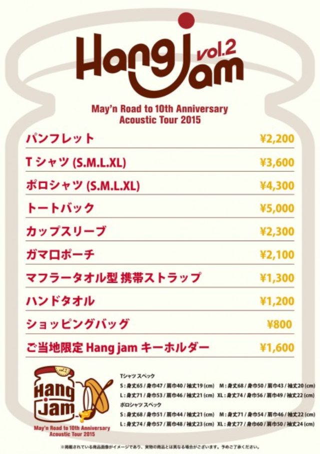 10周年記念日に向け、5月7日よりスタートするアコースティックツアー「Hang jam vol.2」での、会場販売ツアーグッズを発表! 恒例の“お知らせ部長”によるグッズ紹介動画も公開! YouTubeで見る 【グッズを(...)投稿「Hang jam vol.2」ツアーグッズ発表!はMay'n Official Siteの最初に登場しました。