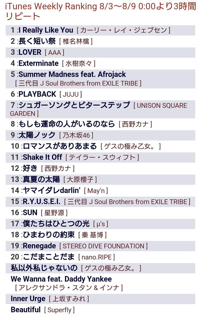 iTunesWeeklyRankingにヤマイダレがランクインしてるから来週は仕事中に有線で聴ける!