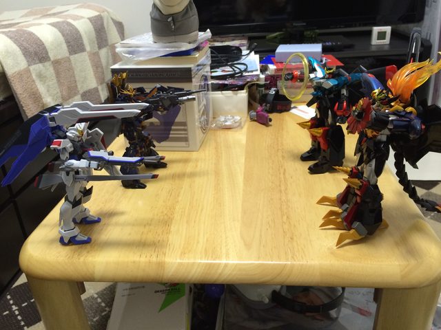 昨日フリーダムガンダムが家に到着してたので!前から持ってるガオガイガーとバンシィとフリーダムガンダムを並べて見ました!かっこいいです!皆さんの日本武道館のチケット羨ましいですね!自分はその日は我慢してます!