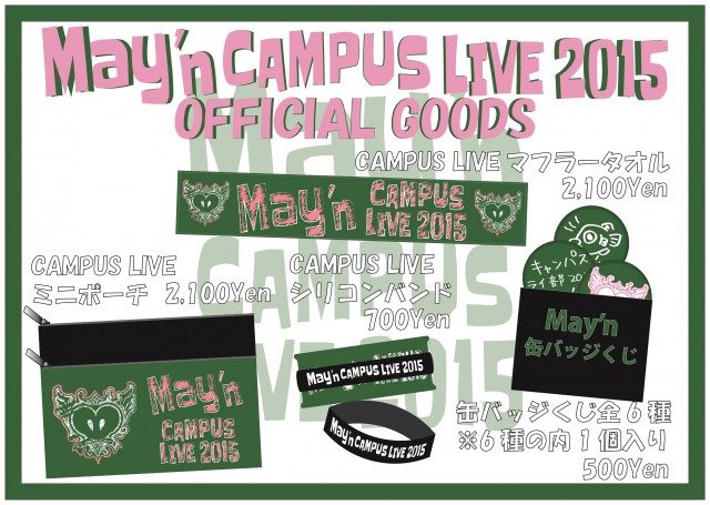 「May’n_Campus Live 2015」グッズ販売決定!! ◾︎販売グッズ詳細 ※各商品、数に限りがございます。予めご容赦くださいませ。 ※商品画像はイメージです。実物とは異なる場合がご(...)投稿「May’n_Campus Live 2015」グッズ販売決定!!はMay'n Official Siteの最初に登場しました。