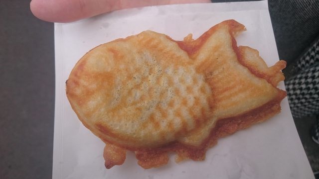 たい焼き売ってた‼グッズ販売待機列にも売りに来てくれたよ(*´ω`*)学生ならではのたい焼きって感じ。生地がかなり餅っぽい感じでたい焼きで始めて食べる食感。焼き餅たい焼きって感じかな(*´ー`*)わりと油っぽかったけど焼きたてだったから表面はパリッとしてて美味しかったよ♪餡はつぶあんで甘さは生地にあっててちょうどよかった。餡の量は少なかったけど><学園祭だし仕方ないよね。グッズ待機列に売りに来たのを買ったので売り場見てないんだけど家庭用の焼き器なのかな?違うかな?