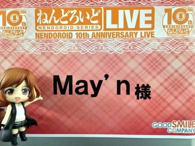 ねんどろいど10thアニバーサリーライブ!ありがとうございましたっっトップバッターでの登場!だったのでとてもドキドキでしたが、熱い皆様のおかげで、めっっちゃ楽しくうたえましたヽ( ́▽`)/バンドメンバーTEAM ONGAKUSHITSUとMay'nダンサーズがいっしょにきてくれたよV( ́・v・`)Vベース、浜崎賢太さんキーボード、宗本康兵さんギター、長澤孝志ながじぃドラムス、青山英樹さんっこのメンバーでFCイベントもですっ実は一緒にねんどろリハしてました( ̄▽ ̄)熱い演奏ありがとうございますー!ダンサーズはおなじみTOSHIKI、AKIHITO★セトリは、射手座☆午後九時 Don't be lateヤマイダレdarin'もしも君が願うのならユニバーサル・バニーChase the world!本日のセトリねんどろ。wヤマイダレはMay'nねんどろとその他は作品のねんどろの映像と共に歌えたのー!!この日だけの特別っ。途中のコーナーではうちのねんどろちゃんでライ部!な写真を紹介したりもしたんだー( ̄▽ ̄)残念ながら最後までライブにいられなかったのですが、お写真もっ楽屋隣だったミルキィホームズさんっいつも気さくでかわいいみなさまっライブでお会いするのは何気に久々だったかも!次回の電波諜報局でも徳井さんは残念ながら来れないようですが、ゲストでみなさまよろしくお願いします☆そして、デレマスのTriad Primusさん!ぁああただのPと化したぜぐふふ渕上さんはTridentさんでもあったので丁度いらっしゃらず残念( ; ; )さらに最後までいられなかったので、みなさまのステージみられなくて号泣たのしかったなー!ねんどろいどさま10周年おめでとうございますっ。この素晴らしい特別な日を音楽で一緒に過ごさせていただけてとても幸せですっこれからも一ファンとしてねんどろを楽しんでいきたいですし、そして、またいつか!May'nねんどろ第2弾でご一緒できますようにっっテンション高いままっ今からタイ行ってきますっ明日はタイにオープンのアニメイトさまでのオープニングセレモニーですっわくわく