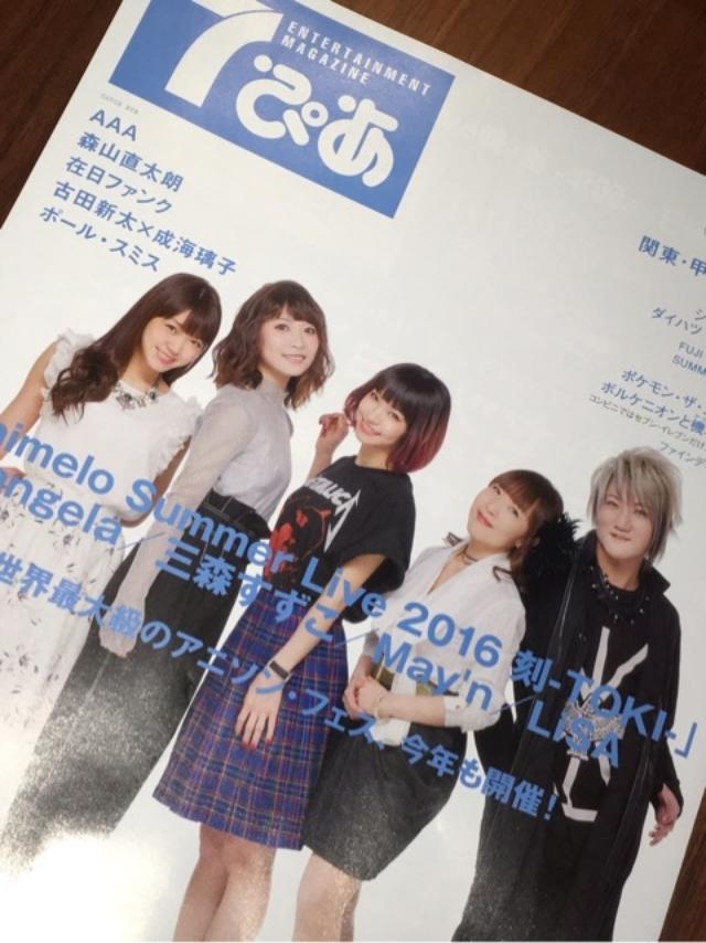 おしらせっ明日6/1~全国のセブンイレブンさまにて配布される7ぴあの表紙をangelaさん、三森すずこさん、LiSAちゃんと一緒に飾らせて頂きましたっアニサマ特集ですっ。中も写真たくさんあるよん今年、2年ぶりに参加させていただくアニサマっ。アニサマは世界が憧れるアニソンイベントだと思うのです刻をこえて愛される楽曲ということでそんなパフォーマンスができるようがんばりますっ。ぜひ、チェックしてねん昨日は、お友達の田島ゆみかすんのお誕生日をかおるとお祝い。27さい、大人だから大人なお寿司を2人でご馳走したよんイカとアジと中トロが特に美味しかったなあ高校の友達ですが、もう27歳の年か~\(^o^)/!!おめでとう♡